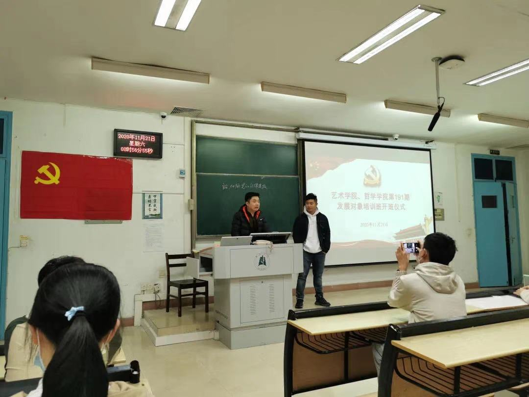 为加强对党员发展对象的教育培训,结合“不忘初心、牢记使命”主题教育,引导发展对象进一步学习贯彻习近平新时代中国特色社会主义思想的理论体系,深刻把握习近平总书记系列重要讲话精神,始终在思想上行动上与党保持高度一致,太阳成tyc33455ccwww分党校、艺术公司分党校于2020年11月21日上午9点,在四号教学楼307教室举行了第191发展对象培训班,太阳成tyc33455ccwww团委书记董力、艺术公司团委书记杨珂以及太阳成tyc33455ccwww、艺术公司全体发展对象培训班成员参加此次开班典礼。