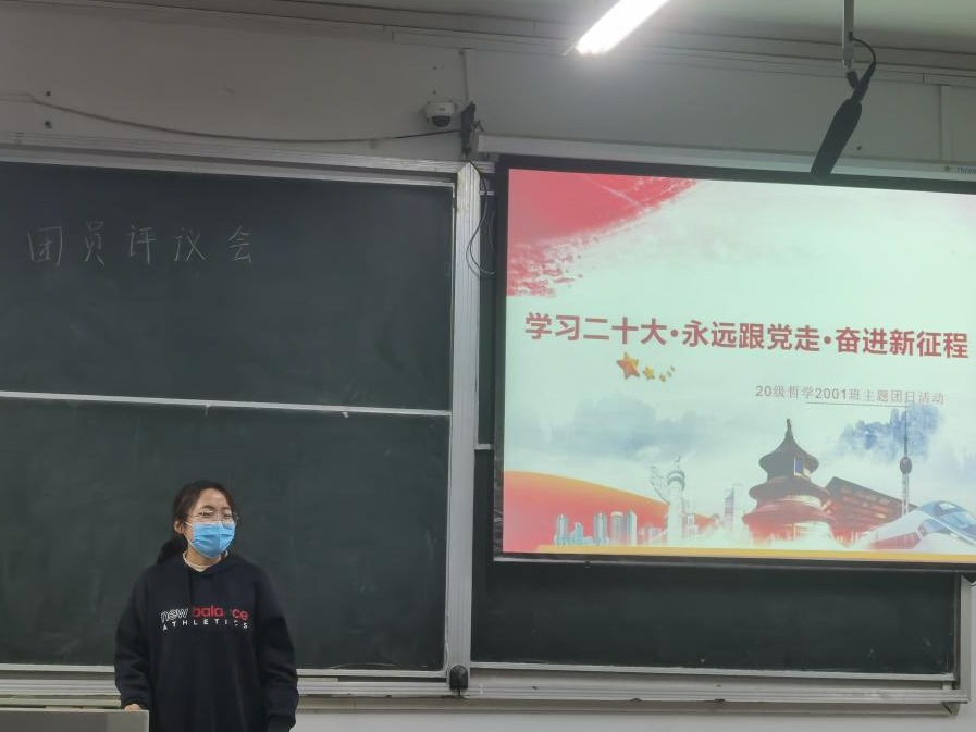 会上,全体起立,庄严肃穆,饱含深情,齐唱中国共产主义青年团团歌,进行了党的二十大报告专题学习,明确了党的二十大主题,回顾了十年来我们经历的三件大事,加强学习了继续推进实践基础上的理论创新的方法、从现在起中国共产党的中心任务、什么是中国式现代化及其本质要求、全面建成社会主义现代化强国的战略安排等重要党的理论,不仅回顾了历史以来在党的带领下取得的成就,增强了同学们的自信,同时指出未来发展的方向和方法,为青年把握当下共建强国提供宝贵指导。最后,全体同学进行了专题组织生活会及团员评议工作。总结团员学习收获、自身不足、改进方向,运用批评与自我批评的武器,肯定成绩、改进不足,阶段总结促进个人发展。