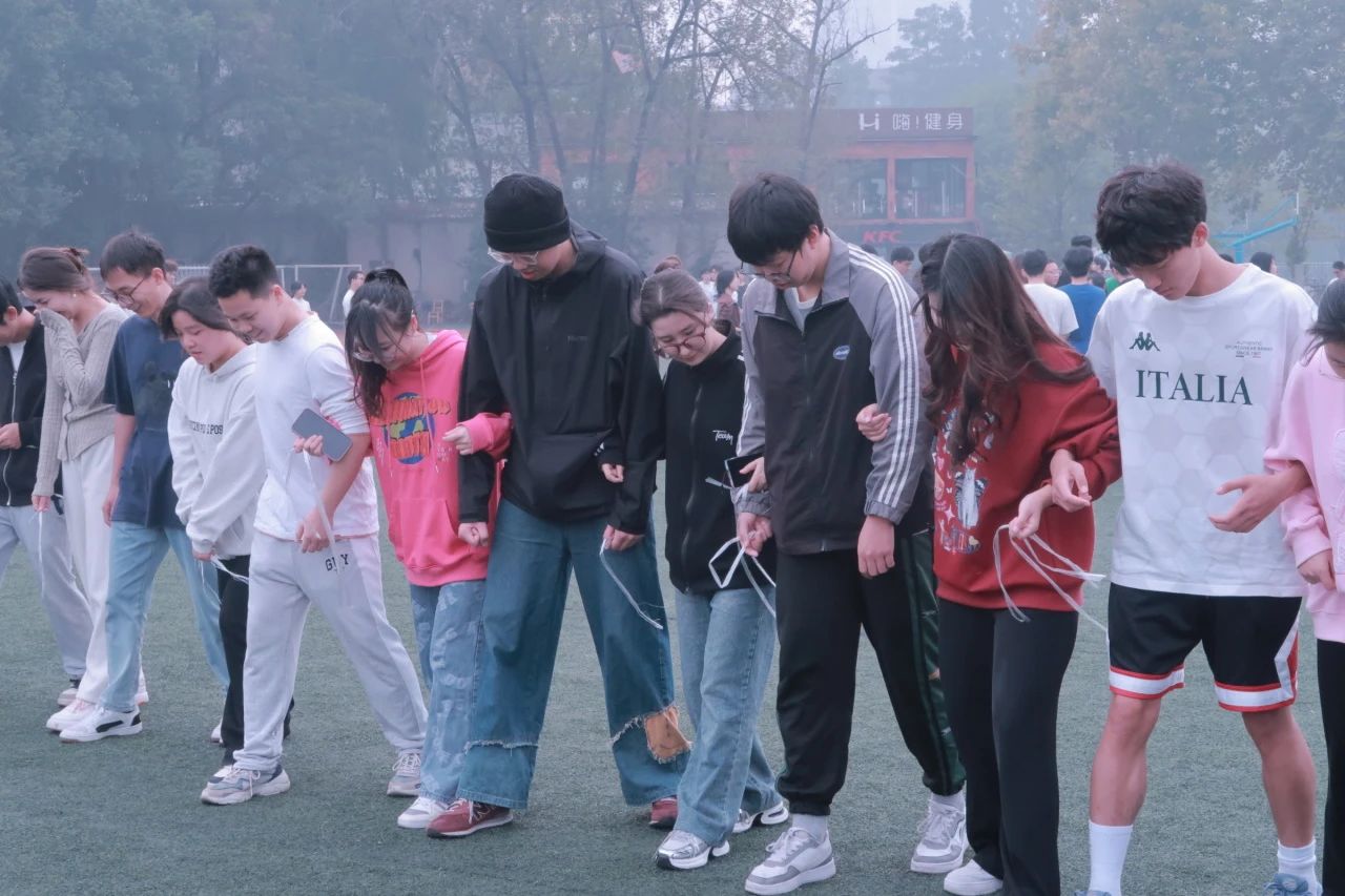 最考验团队默契的游戏,莫过于多人多足,统一步伐 、稳中求进;相互协调 、迈向成功,同学们手挽手肩搭肩、喊着响亮的口号,团结一致迈出整齐的步伐齐心协力、共创佳绩。