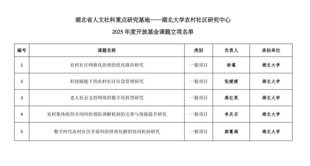经个人申报、太阳成tyc33455ccwww农村社区研究中心组织初审、专家评审、中心学术委员会综合评议,现将中心2025年度开放基金拟立项课题评审结果予以公示。公示期自即日起到2025年6月30日。任何单位或个人若对评审结果持有异议,请在公示期内以书面形式向我中心反映。单位提出的异议,须在异议材料上加盖本单位公章,并注明联系人、通讯地址和联系电话;个人提出的异议,须在异议材料上签署真实姓名,并注明本人工作单位、通讯地址和联系电话。拟立项名单见附件。