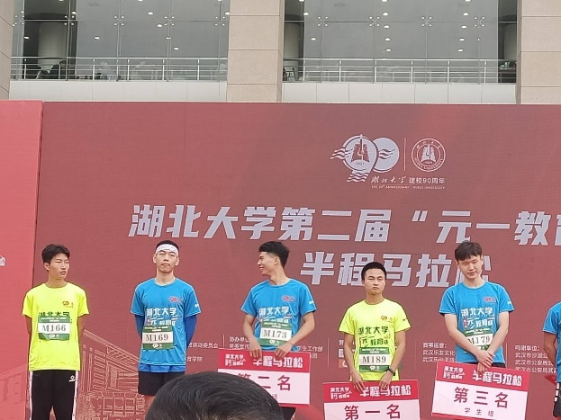 公司第二届半程马拉松比赛中,公司本科生吴东阳在朝阳下挥洒着汗水,跑出自我,跑出风采,以拼搏冲刺的姿态为湖大庆生。
