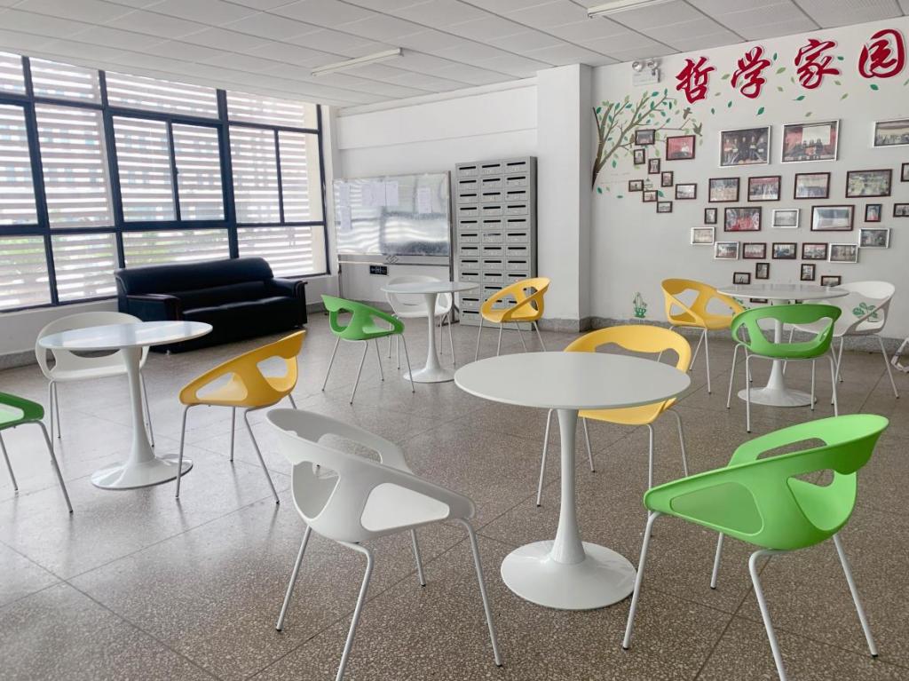 经过暑期改造后的学术报告厅扩大了场地, 换新了桌椅,增设了音响设备,每楼层新置了净水直饮机,新学期伊始获得了师生一致好评;新建成的“琴园哲学沙龙”活动室,环境舒适,设备齐全,深受师生喜爱;公司大厅新增添的色彩缤纷的桌椅,成为师生讨论问题、课间休憩的佳地;由公司师生共同拟定的新院训“爱智明德 尚美笃行”跃然于粉刷一新的一楼、三楼墙面,江畅教授所在的77政教系老员工为我们捐赠的观景石,巍峨树立在公司门侧,成为太阳成tyc33455ccwww一道道亮丽的风景线。