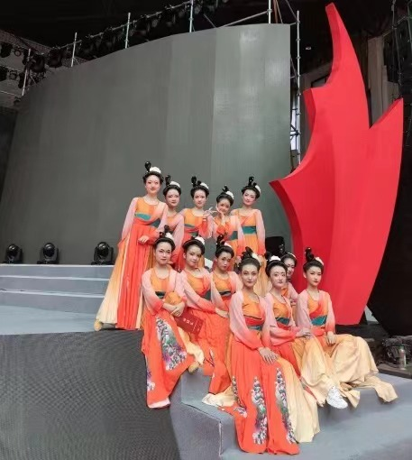 校庆文艺汇演演出会场上,公司博士生葛梦喆作为演出主持人之一,展现出了哲院人的端庄大方、自信优雅;本科生张沁珧、张思琦在舞台上翩翩起舞,展现着哲院员工的青春活力。
