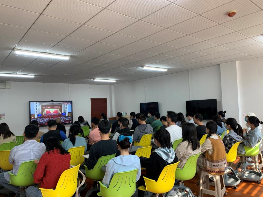 2022年10月16日上午十点,中国共产党第二十次全国代表大会开幕。2020级、2021级本科生研究生全体党员、预备党员及团员分别于会议室D2008、D3008集体收看党的二十大开幕会直播,认真聆听习近平总书记所作的报告,哲学公司党委书记汤德森、党委副书记许媛、经理舒红跃以及团委书记董力出席。