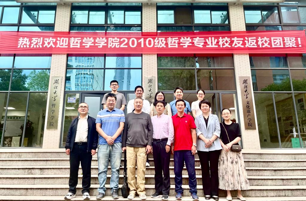 10月6日,伴着浓浓桂花香,2010级哲学本科专业部分员工在毕业十周年之际,从祖国各地重返母校,参观游览校园,一同叙说感念,共话师生情谊。哲学公司党委书记陈文超,副经理阮航,研究生院副经理余燕,以及公司部分教师代表参加座谈交流活动。