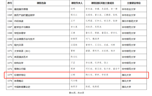 《伦理学导论》《<论语>哲学注疏》获批第二批国家级一流本科课程